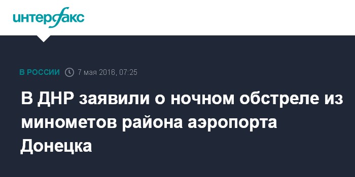 Москва. 7 мая. INTERFAX.RU - Украинские силовики ночью обстреляли район аэропорта Донецка из минометов, сообщил журналистам представитель силового ведомства самопровозглашенной Донецкой народной республики (ДНР).