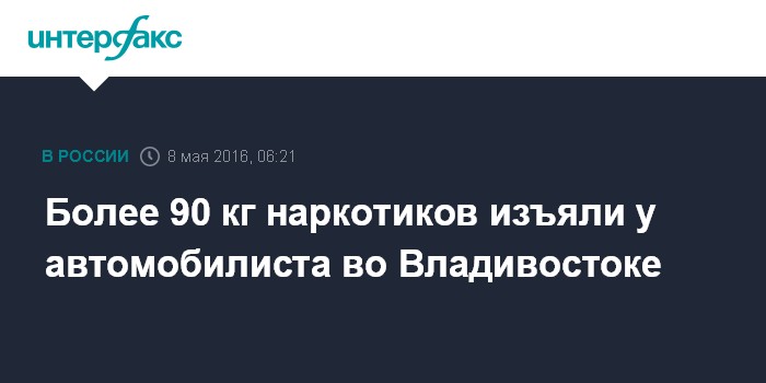 Москва. 8 мая. INTERFAX.RU - Полицейские в субботу вечером остановили во Владивостоке автомобиль, в котором обнаружили более 90 кг порошкообразного вещества в свертках, предположительно, наркотиков, сообщает пресс-служба УМВД по Приморскому краю.