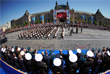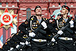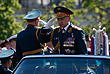 Путин прошел по всей Красной площади во главе колонны, общаясь с теми, кто шел рядом.