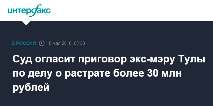Москва. 10 мая. INTERFAX.RU - Центральный районный суд Тулы во вторник приступит к оглашению приговора по уголовному делу бывшего главы города Александра Прокопука, обвиняемого в растрате, сообщила "Интерфаксу" пресс-секретарь областного управления Судебного департамента Ольга Дячук. Заседание пройдет в открытом режиме.