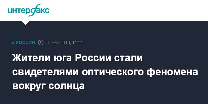 Москва. 10 мая. INTERFAX.RU - Эффектное оптическое явление - гало в виде огромного четкого радужного круга вокруг солнца смогли увидеть во вторник жители ряда регионов юга России, сообщил научный руководитель специальной астрофизической обсерватории Российской академии наук (САО РАН), член-корреспондент РАН Юрий Балега.
