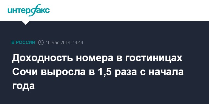 Москва. 10 мая. INTERFAX.RU - Доходность гостиничного номера в горном и приморском кластерах Сочи выросла более чем в 1,5 раза в первом квартале 2016 года, показало исследование консалтинговой компании JLL.