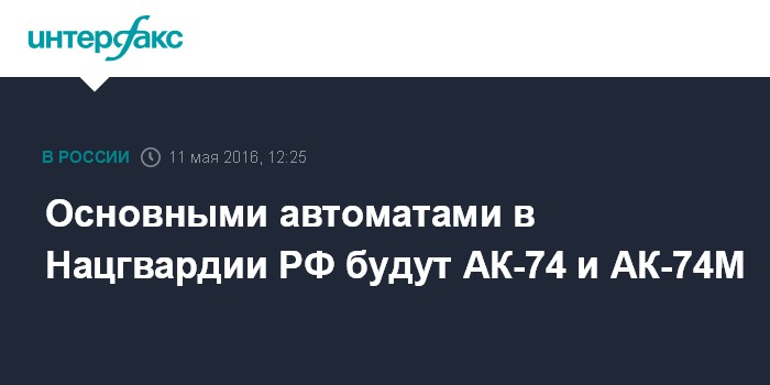Москва. 11 мая. INTERFAX.RU - Автоматы Калашникова АК-74 и АК-74М будут основными автоматами войск Национальной гвардии РФ, сообщил "Интерфаксу" в среду источник в главном командовании нового ведомства.