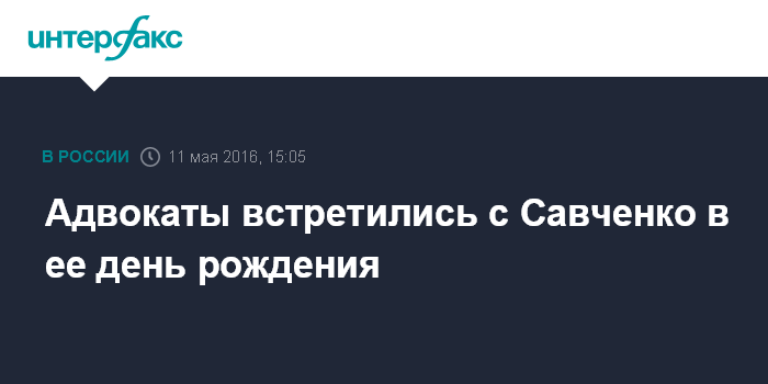Москва. 11 мая. INTERFAX.RU - Украинская военнослужащая Надежда Савченко, осужденная в РФ на 22 года по делу об убийстве российских журналистов в Донбассе, считает, что вопрос о ее передаче на родину будет решен не ранее 23 мая, сообщил посетивший ее в СИЗО адвокат.
