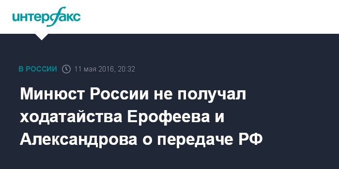 Минюст России не получал ходатайства Ерофеева и Александрова о передаче РФ
