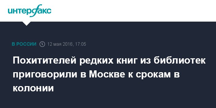 Москва. 12 мая. INTERFAX.RU - Тверской суд Москвы приговорил к длительным срокам в колонии строгого режима троих похитителей редких книжных изданий из ведущих библиотек страны