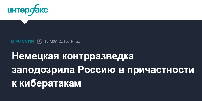 Москва. 13 мая. INTERFAX.RU - В Федеральной службе защите конституции (BfV) Германии в пятницу сообщили, что располагают данными о причастности России к ряду организованных в стране кибератак.