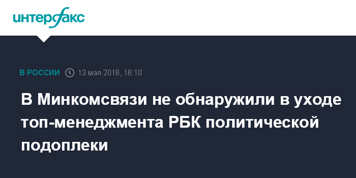 Москва. 13 мая. INTERFAX.RU - Заместитель министра связи и массовых коммуникаций РФ Алексей Волин заявил, что в уходе руководства холдинга РБК нет политической подоплеки.