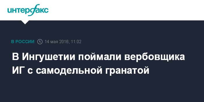 Москва. 14 мая. INTERFAX.RU - В ингушском городе Карабулак сотрудники правоохранительных органов задержали местного жителя, занимавшегося вербовкой в запрещенную в России террористическую организацию "Исламское государство", сообщил в субботу "Интерфаксу" источник в правоохранительных органах региона.