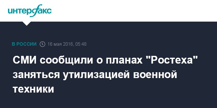 Москва. 16 мая. INTERFAX.RU - Корпорация "Ростех" начнет утилизировать военную технику, а затем - использовать снятые с нее комплектующие и запасные части. Как сообщает "Коммерсантъ" со ссылкой на представителей оборонной промышленности, комплектующие планируют использовать их как для нужд российских военных, так и для иностранных заказчиков, на вооружении которых состоит техника советского и российского производства.