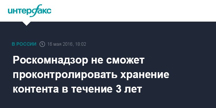 Роскомнадзор не сможет проконтролировать хранение контента в течение 3 лет