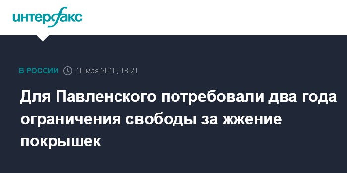 Москва. 16 мая. INTERFAX.RU - Гособвинение просит суд приговорить художника-акциониста Петра Павленского к двум годам ограничения свободы за акцию "Свобода" в Петербурге и освободить его от наказания в связи с истечением срока давности, сообщил "Интерфаксу" его адвокат Дмитрий Динзе.