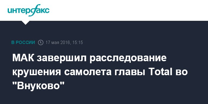 МАК завершил расследование крушения самолета главы Total во "Внуково"
