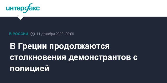 Москва. 11 декабря. INTERFAX.RU - Столкновения между демонстрантами и стражами порядка продолжаются в четверг в Афинах, сообщают в местной полиции.