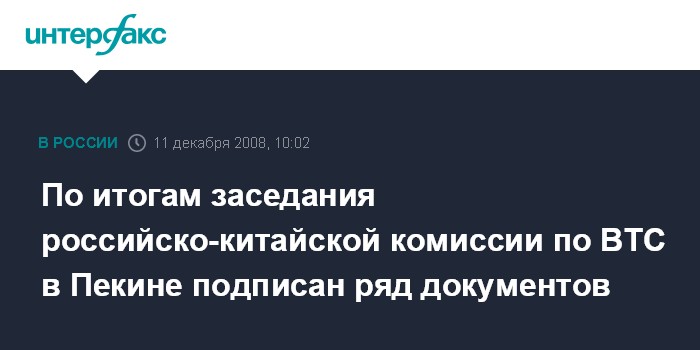 По итогам заседания российско-китайской комиссии по ВТС в Пекине подписан ряд документов