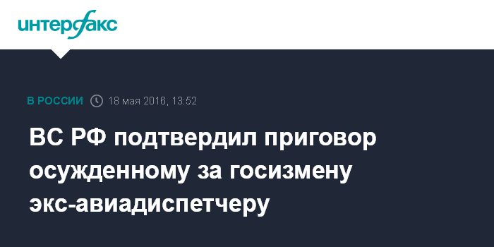 ВС РФ подтвердил приговор осужденному за госизмену экс-авиадиспетчеру