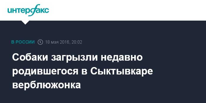 Москва. 18 мая. INTERFAX.RU - Бродячие собаки загрызли гулявшего на пастбище верблюжонка, который родился в конце апреля в Сыктывкаре, сообщили "Интерфаксу" в местном конном центре.