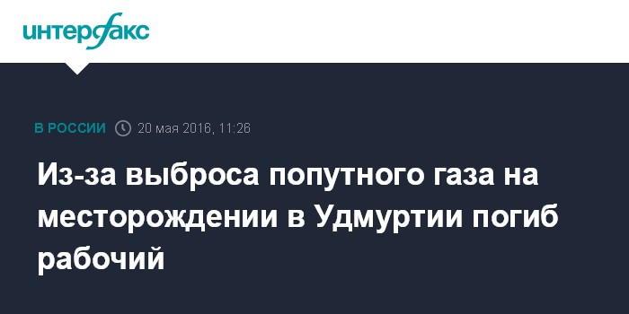 "По предварительным данным, сегодня около 7 часов утра (6:00 по московскому времени - ИФ) на нефтяном месторождении "Мишкинское" ОАО "Удмуртнефть" произошел выброс попутного газа. В результате этого 52-летний помощник бурильщика скончался, двое других рабочих госпитализированы", - говорится в сообщении.