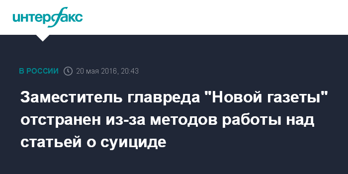 Заместитель главреда "Новой газеты" отстранен из-за методов работы над статьей о суициде