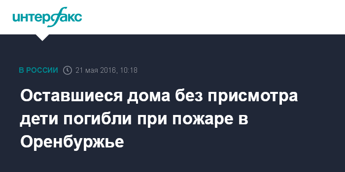 Москва. 21 мая. INTERFAX.RU - Следственные органы организовали проверку по факту гибели маленьких детей в результате пожара в Шарлыкском районе Оренбургской области.