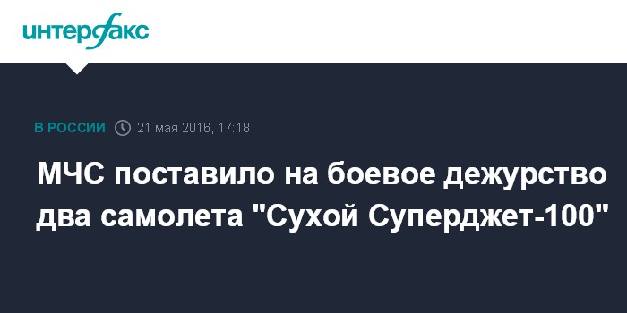 Москва. 21 мая. INTERFAX.RU - МЧС России поставило два авиалайнера "Сухой Суперджет-100" на боевое дежурство с этой субботы, сообщили журналистам в пресс-службе МЧС России.