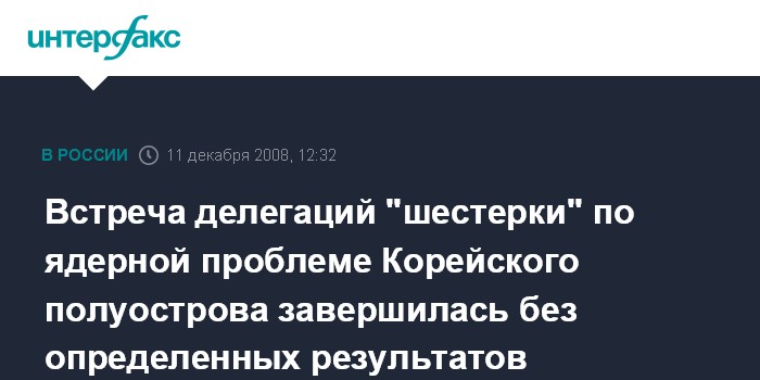 Москва. 11 декабря. INTERFAX.RU - Совещание глав делегаций стран-участниц шестисторонних переговоров по денуклеаризации Корейского полуострова завершилось без определенных результатов, заявил агентству "Интерфакс-Китай" близкий к переговорам информированный российский источник.