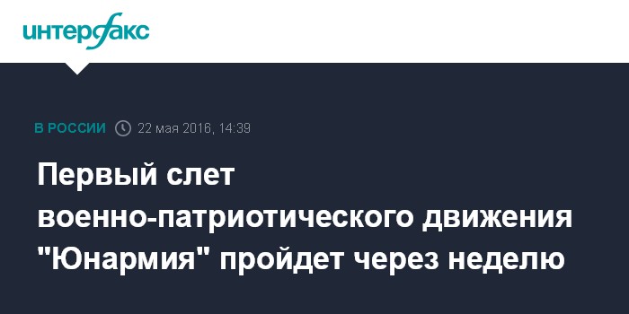 Москва. 22 мая. INTERFAX.RU - Учредительный слет "Юнармии" пройдёт 28 мая в подмосковном парке "Патриот", заявил председатель ДОСААФ генерал-полковник Александр Колмаков.