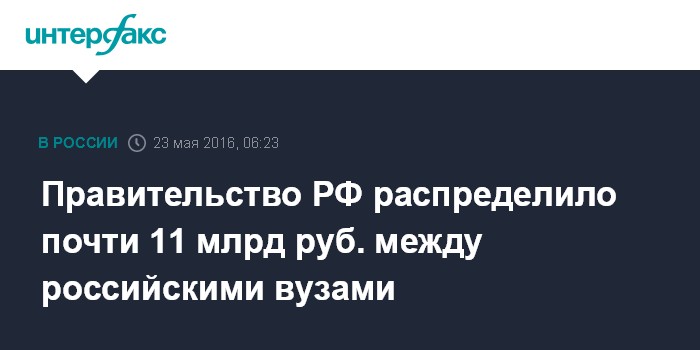 Правительство РФ распределило почти 11 млрд руб. между российскими вузами