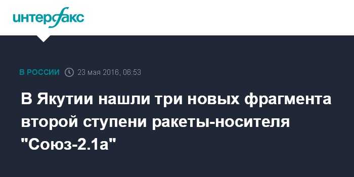 Москва. 23 мая. INTERFAX.RU - Поиски фрагментов ракеты-носителя "Союз-2.1а" продолжаются в Вилюйском и Алданском районах Якутии.