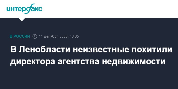 Москва. 11 декабря. INTERFAX.RU - В Волхове (Ленинградская область) похищен генеральный директор агентства недвижимости, сообщил "Интерфаксу" источник в правоохранительных органах региона.