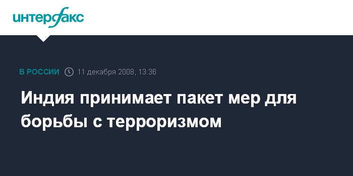 Москва. 11 декабря. INTERFAX.RU - Правительство Индии опубликовало пакет мер по усилению внутренней безопасности в государстве после террористических атак на город Мумбаи, сообщает BBC со ссылкой на заявление министра внутренних дел страны Паланьяппана Чидамбарама.