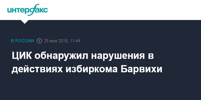 Москва. 25 мая. INTERFAX.RU - ЦИК РФ выявил нарушения со стороны избиркома сельского поселения Барвихинское Одинцовского района, поручил избиркому Московской области проверить ее деятельность, и в случае подтверждения обратиться в Московский областной суд с иском о расформировании избиркома.