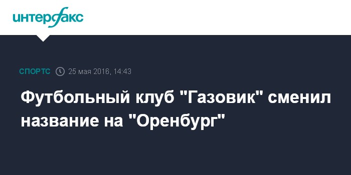 Москва. 25 мая. INTERFAX.RU - Футбольный клуб "Газовик", который дебютирует в Российской футбольной премьер лиге в сезоне-2016/2017, сменил название на "Оренбург", сообщает официальный твиттер РФПЛ.