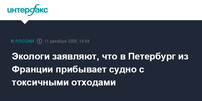 Экологи заявляют, что в Петербург из Франции прибывает судно с токсичными отходами