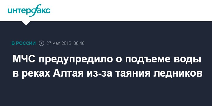 Москва. 27 мая. INTERFAX.RU - Интенсивное таяние ледников в горах Республики Алтай, а также дожди существенно осложнят паводковую обстановку в регионе, сообщает в пятницу пресс-центр главного управления МЧС РФ по республике.