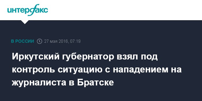 Иркутский губернатор взял под контроль ситуацию с нападением на журналиста в Братске