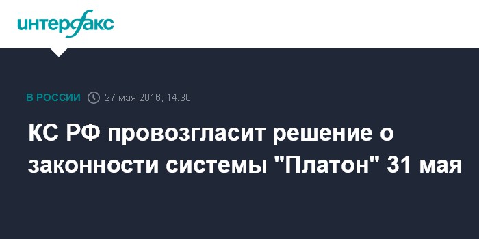 Москва. 27 мая. INTERFAX.RU - Постановление по делу о законности взимания с большегрузных автомобилей платы за проезд по федеральным трассам Конституционный суд провозгласит 31 мая.
