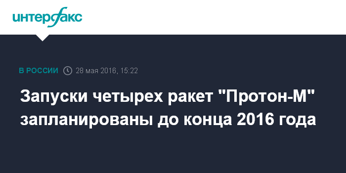 Москва. 28 мая. INTERFAX.RU - Четыре ракеты "Протон-М" могут быть запущены до конца года.
