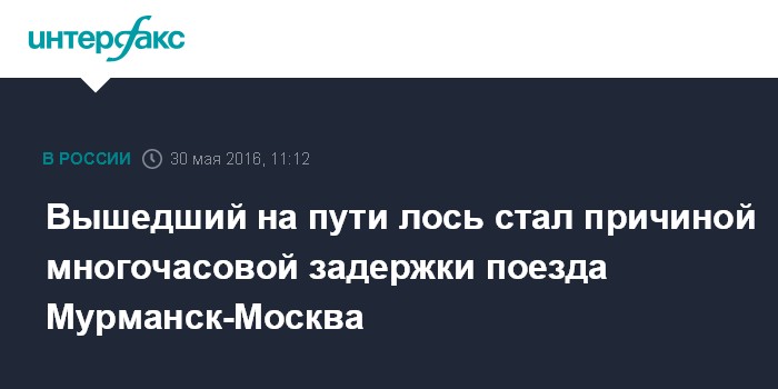 Москва. 30 мая. INTERFAX.RU - Лось задержал на несколько часов прибытие поезда, следовавшего из Мурманска в Москву.
