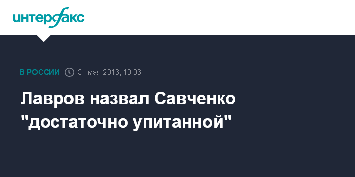 Москва. 31 мая. INTERFAX.RU - Глава МИД РФ Сергей Лавров отметил "упитанность" украинской военнослужащей Надежды Савченко, голодавшей во время содержания под стражей в России.