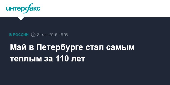 Москва. 31 мая. INTERFAX.RU - Май 2016 года стал самым теплым за последние 110 лет, сообщил журналистам на пресс-конференции в информационном агентстве "Интерфакс" во вторник главный синоптик города Александр Колесов.