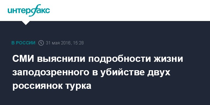 Москва. 31 мая. INTERFAX.RU - Турецкая полиция вышла на след мужчины, подозреваемого в убийстве четырех человек, в том числе двух россиянок, сообщили местные СМИ.