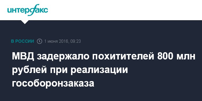 МВД задержало похитителей 800 млн рублей при реализации гособоронзаказа