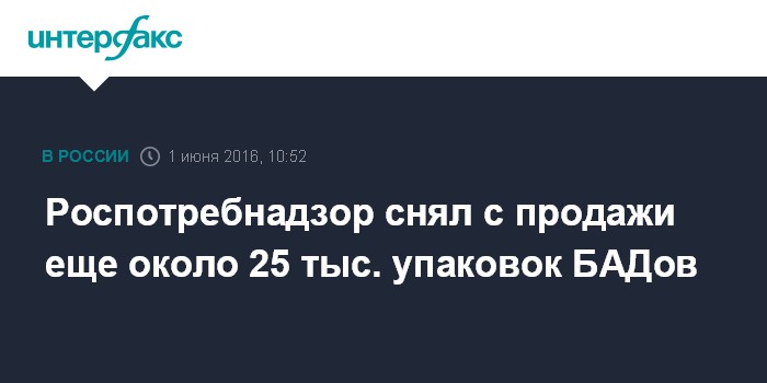 Роспотребнадзор снял с продажи еще около 25 тыс. упаковок БАДов