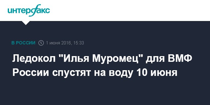 Москва. 1 июня. INTERFAX.RU - "Адмиралтейские верфи" (входит в Объединенную судостроительную корпорацию) спустят на воду головной ледокол проекта 21180 "Илья Муромец" 10 июня, сообщил главком ВМФ России адмирал Владимир Королев.