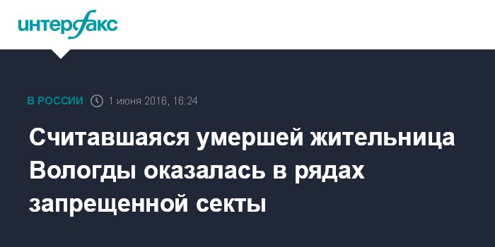 Считавшаяся умершей жительница Вологды оказалась в рядах запрещенной секты