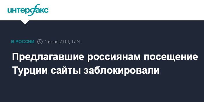 Москва. 1 июня. INTERFAX.RU - Московский суд заблокировал сайты 23 туроператоров и турагентов, предлагавших россиянам отдых в Турции, сообщает управление Роспотребнадзора по Москве.