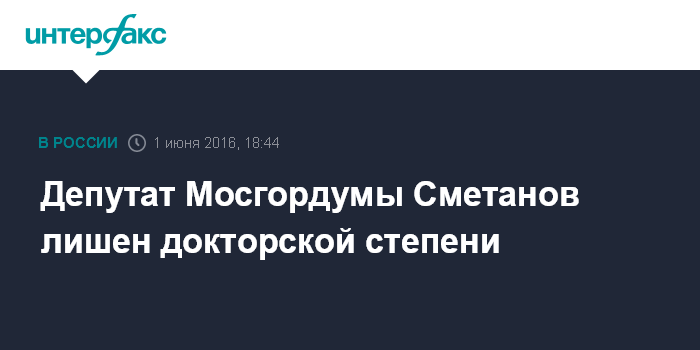 Депутат Мосгордумы Сметанов лишен докторской степени