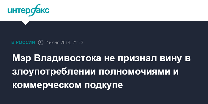 Мэр Владивостока не признал вину в злоупотреблении полномочиями и коммерческом подкупе