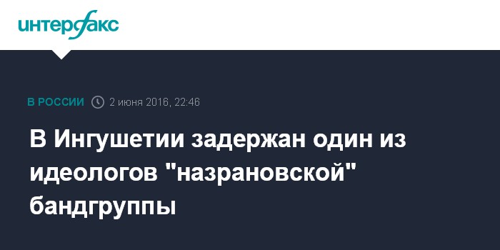 Москва. 2 июня. INTERFAX.RU - В Назрани в ходе спецоперации задержан один из идеологов так называемой "назрановской" бандгруппы, сообщил "Интерфаксу" источник в правоохранительных органах Ингушетии.